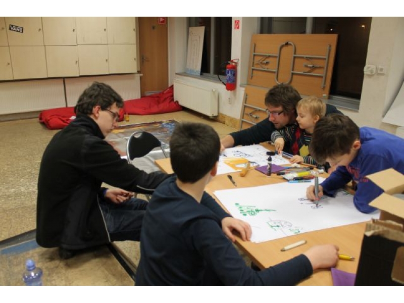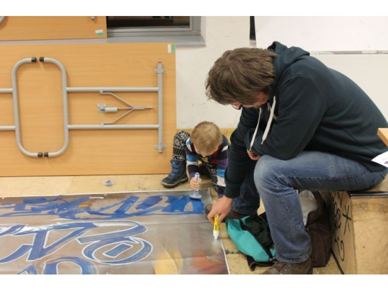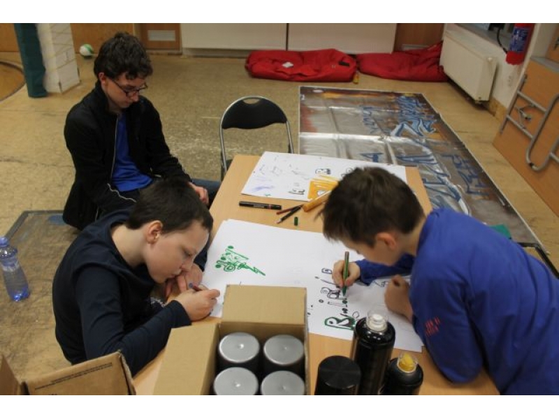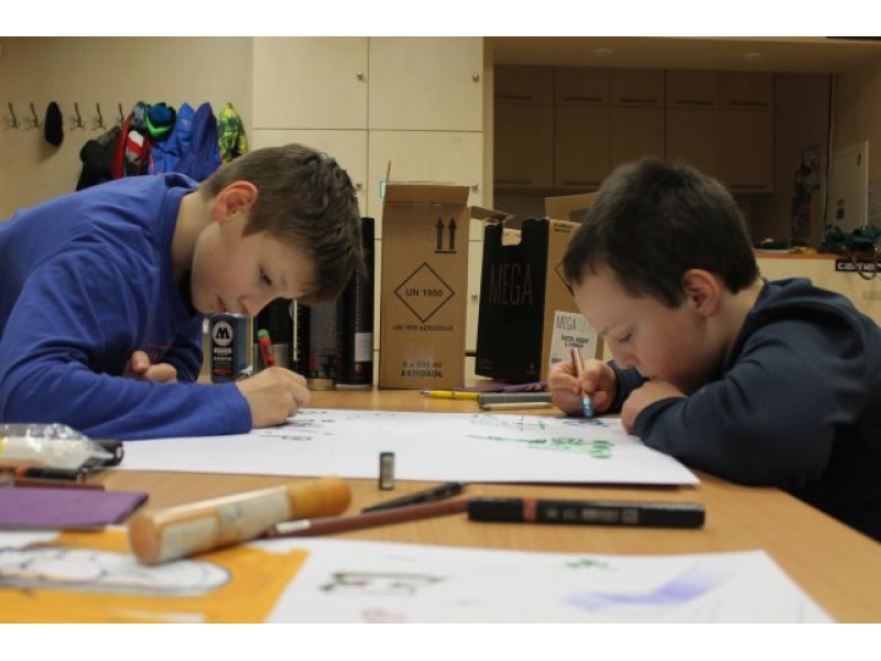 Študenti Martina Marka sa v umení kreslenia grafitov zdokonaľujú z hodinu na hodinu. Už zvládnu kresliť plnohodotné grafity skeče. Aj najmenší člen prikladá ruku k spoločnému dielu.