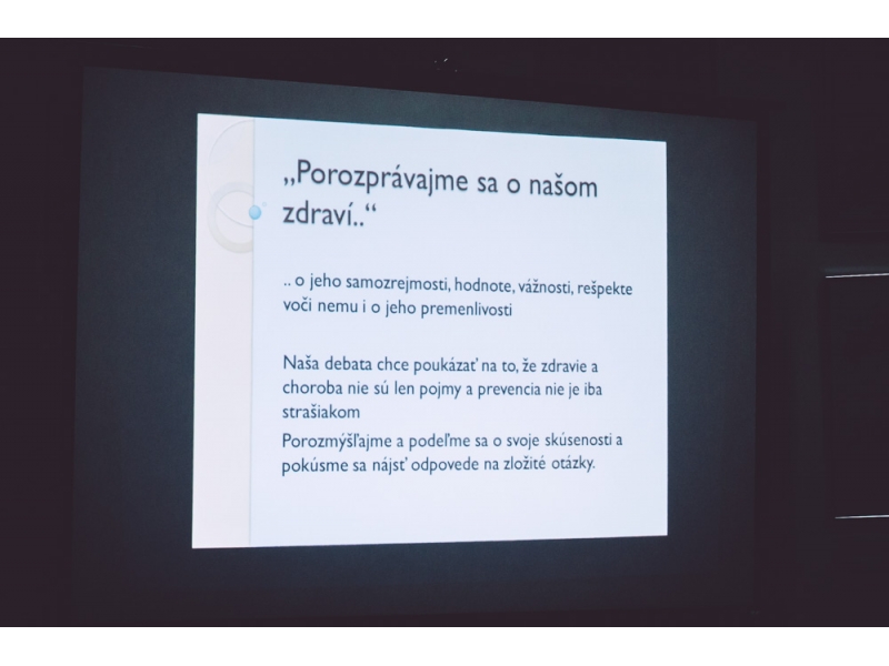V pondelok večer sa konala verejná debata o prevencii a špecifikách ľudského zdravia. Zdravie a choroba sú všeobecne dobre poznateľné a jasné, no každé z nich má aj svoje špecifiká. Účastníci debaty viedli vášnivé rozhovory a podelili sa o svoej názory a rady, čo robiť v čase choroby. Verejnú debatu viedli študentky etiky Prešovskej univerzity v Prešove, Veronika a Katarína.