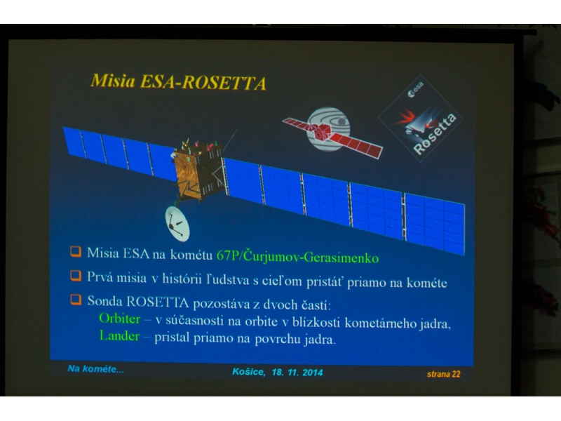 Len 6 dní po pristátí landera vesmírnej sondy Rosetta na kométe, mali Košičania exkluzívnu príležitosť stretnúť sa s človekom, ktorý sa priamo podieľal na príprave kritickej časti sondy, ktorá zabezpečuje komunikáciu medzi orbitálnym komplexom a robotickým modulom PHILAE. Ján Baláž z Ústavu experimentálnej fyziky SAV v Košiciach mal na starosti dôležité funkcie pristávacieho modulu PHILAE. Znie to neuveriteľne, ale časť modulu, na ktorý sú upriamené oči celého sveta vznikol v Košiciach, rukami košických vedcov.
